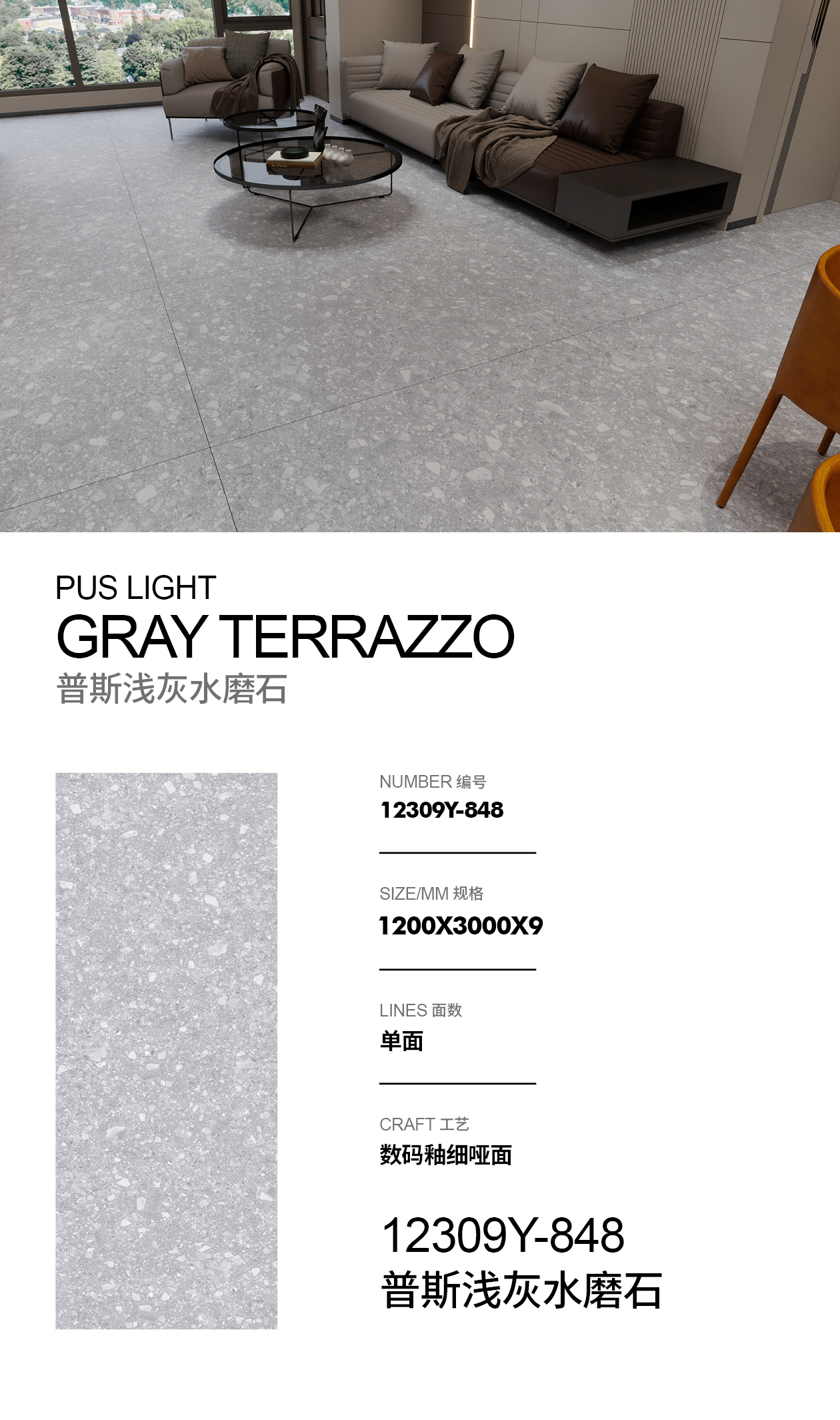 普斯浅灰水磨石